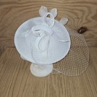 Vtg Fascinator Hat For Women White LG Bow Face Netting Wedding Prop Blemish 1787