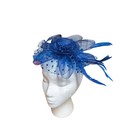 Royal Blue Fascinator Clip Polka Dot Netting Feather Derby Wedding Tea Party Hat