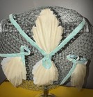 Handmade fascinator with a flourish of dazzling feathers, butterflies, and flowers. This burst of mint, teal, turquoise, and sea green. A surprisingly lightweight head-piece.