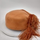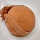 Vintage Peau De Peche Pillbox Hat Fascinator Womens 7 Orange Velour Wool Feather