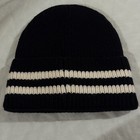CHANEL Black White Knit Beanie Hat Logo Striped Unisex One Size