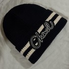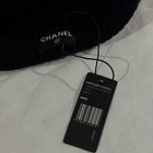 The Chanel black knit beanie is a classic winter accessory. Soft knit fabric provides warmth and comfort for daily wear. Clean, bold, and versatile. • Item: Black knit beanie with white stripe and Chanel logo.
