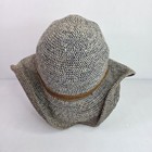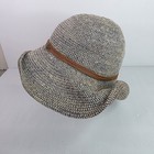 Goorin Bros Woven Straw Cloche Bucket Hat Womens Beige Large Brown Leather Trim
