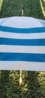VIntage Balenciaga Paris Large Striped Aqua Blue Tan Wooden Handle Umbrella VGUC