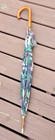 UMBRELLA Compact One Touch Automatic Open Folding Green & Blue Wooden Handle