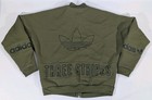 This women's adidas Originals track jacket features a unique olive green waffle-knit texture and a modern bomber silhouette. It stands out with bold branding, including a large trefoil on the back and "THREE STRIPES" across the lower hem. Perfect for adding a streetwear edge to a casual look. This has dropped casual shoulders and is in Excellent pre-owned condition and comes from a smoke-free home. It will weigh 1 lb 5 oz with packaging.