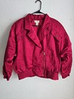 Vintage Bocoo Women's Bomber Jacket Fuschia Nylon Half Zip Lightweight Jacket. Nylon shell w/ polyester & cotton lining. Shoulder pads. Size Large Across the bottom 18" Chest appx 23.5" Full length appx 23" In great pre-owned condition. General wear. There is some discoloration around the cuffs of the sleeves.
