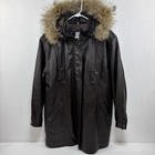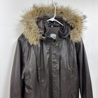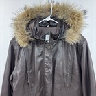 VTG Y2K Brown Leather Jacket Women’s Removable Fur Lined Hood Size M Field Gear
