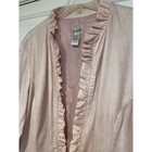 Chicos Open Front Ruffle Blazer Jacket Soft Pink Snake Print 3 XL 16 Lightweight