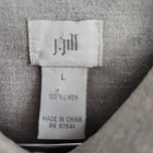 This J. Jill jacket is a stylish and versatile addition to any woman's wardrobe. Made from breathable linen, it features a classic beige color and a button front closure for a polished look. With a short length and relaxed fit, this jacket is perfect for casual or travel occasions during the summer and spring seasons. The jacket also includes accents like a collared neckline, pockets, and a single-breasted design, making it a practical yet fashionable choice for everyday wear.