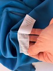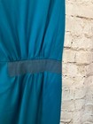 Materials: Polyester outer and lining. Shoulder to Hem: 33-36.5" (curved hem). Color: Petrol blue. Waist: 28" around. Bust: 37" around.