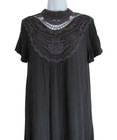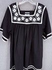Go Softly Patio House Dress Black Floral Muumuu Embroidered Wrinkle Resistant L