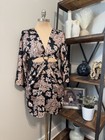 Gianni Bini Raquel Kimono Deep VNeck Ring Cutout Satin Floral Dress Womens SZ 0