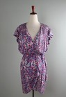 Madewell purple pansy floral 100% silk pleated dress size 10 office party