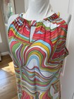 Vibrant Jude Connally halter mini dress with a bold swirl print. Keyhole neckline and gathered halter detail. Lightweight, easy-to-wear silhouette. Bright, playful colors for casual summer outings. Size L