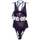 Cacique Purple Floral Lace Strappy Cage Teddy Bodysuit Plus Size 26/28 Plum
