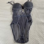 Daisy Fuentes grey lace &mesh Push-up Underwire Bodysuit/Teddy Flirty Sexy Large