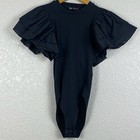 Zara Bodysuit Womens Small Black Ribbed Ruffle Sleeves Minimalist Whimsigoth