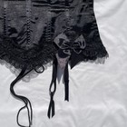 The product is a lot of two black corsets from the brand Adore Me, designed for women in size L. These corsets feature black silky material, ruffle and rhinestones as accents, adding a touch of elegance and allure to the style. The corset tops are perfect for adding a daring and stylish element to any outfit, whether worn as a lingerie piece or as a fashionable statement top. Ideal for those looking to add a hint of romance and glamour to their wardrobe. Cannot say new, no tags, don't show use but obtain as seen in last picture. No International or Alaskan sales