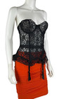 Fredericks of Hollywood Icon Silk Bullet Bra Chemise Corset Garters Sz L Black