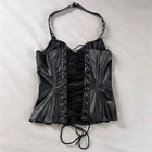 Faux Leather Halter Corset Top Women's Small Black Belted Zip Lace Up Gothic