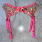 VS/love for lemons pink with neon floral embroidery garter belt Large