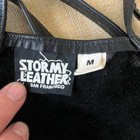 Authentic black leather harness-style corset top from Stormy Leather San Francisco. Super edgy statement piece featuring multiple adjustable buckle straps across the front and structured waist for a flattering, cinched fit. Cross-back straps add a unique detail and help keep everything secure. Perfect for goth, punk, Y2K, festival, or clubwear styling. Looks amazing layered over a tee or worn on its own. • Genuine black leather• Adjustable buckle front (flexible fit)• Cross-back straps• Condition: Excellent pre-owned condition. Leather is soft and supple with minimal wear. All buckles and straps intact and fully functional. Size: M Adjustible, see pics for measurements