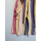 ATTRIBUTES Brand: Line & Dot Item Type: Jumpsuit Style: Wide Leg Pattern: Striped Sleeve: Ruffle Cap Sleeve Neckline: V-Neck Closure: Back Zipper Waist: Tie Waist Leg: Cropped Culotte Color: Pink, Yellow, Purple, White Material: Linen Blend Occasion: Summer Casual MEASUREMENTS Pit to Pit: 17" Shoulder to Hem: 48" CONDITION No rips, stains, or holes noted Keywords Line and Dot, Striped Jumpsuit, Linen Jumpsuit, Wide Leg, Summer, Boho, Ruffle Sleeve, Culotte, Pastel, Casual