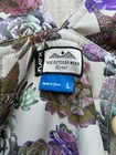 White, Pink, and Green Floral Design. Size 2.2X. Side Pockets. 100% Polyester. This Item is in EXCELLENT CONDITION! No Flaws!