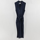 Anthropologie Brielle Plaid Jumpsuit Womens Size L Navy Blue Sleeveless Belted