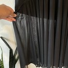 The black skirt is made of a lightweight and breathable linen and rayon knit fabric, which gives it a comfortable feel and requires gentle hand wash only. The skirt has a pleated design with hook and eye and zipper closures, and falls to knee length with a flattering flare.