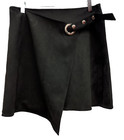 Patrizia Luca Womens Faux Wrap Mini Skirt Size Medium Faux Suede Black Buckle