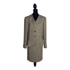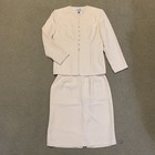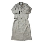 Classic, professionaltwo-piece suit featuring a tailoredjacket and matching skirt. Pit to pit: 20-21 in. Suit jacket. Matching skirt. Features: 2 FrontSlits on skirt. Pre-owned - 1 pulled thread pointed out, very faint.