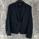 Merona Size 2 Wool Career Notched Blazer Jacket Black Single Button Long Sleeve