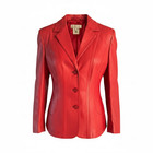 Vintage Escada Margaretha Ley Red Nappa Leather Suit 90s Jacket Pants Set EU 38
