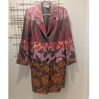 This is a stunning, vintage, 2 piece set by CARLISLE. A long sleeve, long line, silk blazer and matching sleeveless dress with a vibrant patchwork of floral prints in shades of pink, red, brown, and orange. Excellent condition! Keywords: silk jacket, designer dress, patchwork print, floral pattern, statement piece, cocktail attire, special occasion, luxury fashion, garden party, evening wear, bold print, sophisticated style, size 12 dress, silk blend, vintage