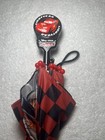 Kids size umbrella. I WILL TRY TO RESOLVE THE PROBLEM. Black with red graphics design. Minor marks from normal use, see closeup pictures.