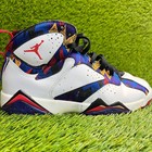 Nike Air Jordan 7 Retro Boys Size 6Y White Blue Athletic Leather Shoes Sneakers