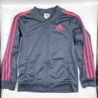 Adidas Track Jacket Girls Size 8 Purple And Pink Full Zip Stand-Up Collar Logo