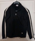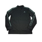 Adidas Boys 14/16 Black Green Striped Track Jacket Full Zip Logo Athletic