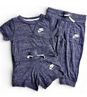 Nike Gym Youth Small 6/7 T-shirt, Capri Joggers & Shorts Heather Blue Bundle Set