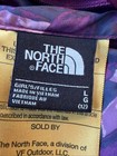 The North Face Girls Reversible Down 600 Fill Jacket in Boysenberry Flower, size L, is a stylish and functional outerwear piece for young girls. Perfect for casual occasions in winter, fall, and spring, this hooded jacket features a floral pattern and colorful accents, making it a vibrant addition to any wardrobe.