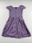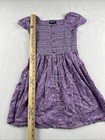 Girls Lands End Dress Purple Gingham Floral Button Smocked Size 10 Sundress