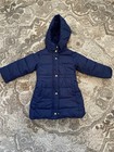 J Crew Crewcuts Coat Girls 3T Navy Blue Fleece Puffer Long Jacket Hooded Parka