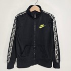 Nike Track Jacket Kids Size 7 Black Volt Logo Tape Full Zip Athletic H514-023