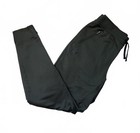 Comfortable Under Armour jogger sweatpants in olive green. Features an elastic waistband with drawstring for adjustable fit. Two front zipper pockets provide secure storage. Ribbed cuffs at the ankles offer a snug fit. Made from a soft, stretchy fabric ideal for casual wear or light workouts. Measurements - Waist (laying flat side to side): 15 inches Outside seam (total length, waist to bottom hem): 38 inches