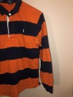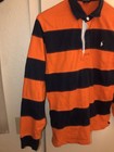 Vintage Polo Ralph Lauren Rugby Shirt Striped Orange Navy Kanye Sz Youth Large. Condition is Pre-owned - Good. Shipped with USPS Ground Advantage.