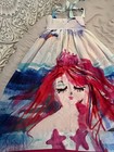 This limited edition Bijou is a work of art! 'Aquareine' Dress by Bijou Sauvage Clothier is a stunning mermaid-themed gown in size 7 for girls in excellent condition. Gorgeous for pictures or a special occasion, or imaginative fun! The drawing captures the beauty of the ocean and sky. The small pockets can hold tiny treasure. Its long straps and button-closure along the back add playful touches to the fitted bodice that flows beautifully with a full-length, lined skirt. A beautiful mermaid in rich pinks and blues wraps around the dress with her tail emerging on the backside along birds in a subtle sky. Add a touch of elegance and sophistication with this amazing clothing piece, one to cherish. Shipped fully insured.
