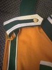 The product is a vintage Ostwald marching band uniform in gold and green. It is designed for the vintage Ostwald marching band and features a unique color combination of gold and green. This uniform likely holds historical significance and may be used for reenactments or theatrical performances. Please look at pictures Collar has some stains, piece is removable