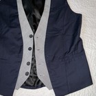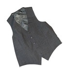 Vest is gray polyester blend front. 2 pockets, gray has tiny red pin stripes,lining and back. 40” chest, length 23.5” from the shoulder to front hem.